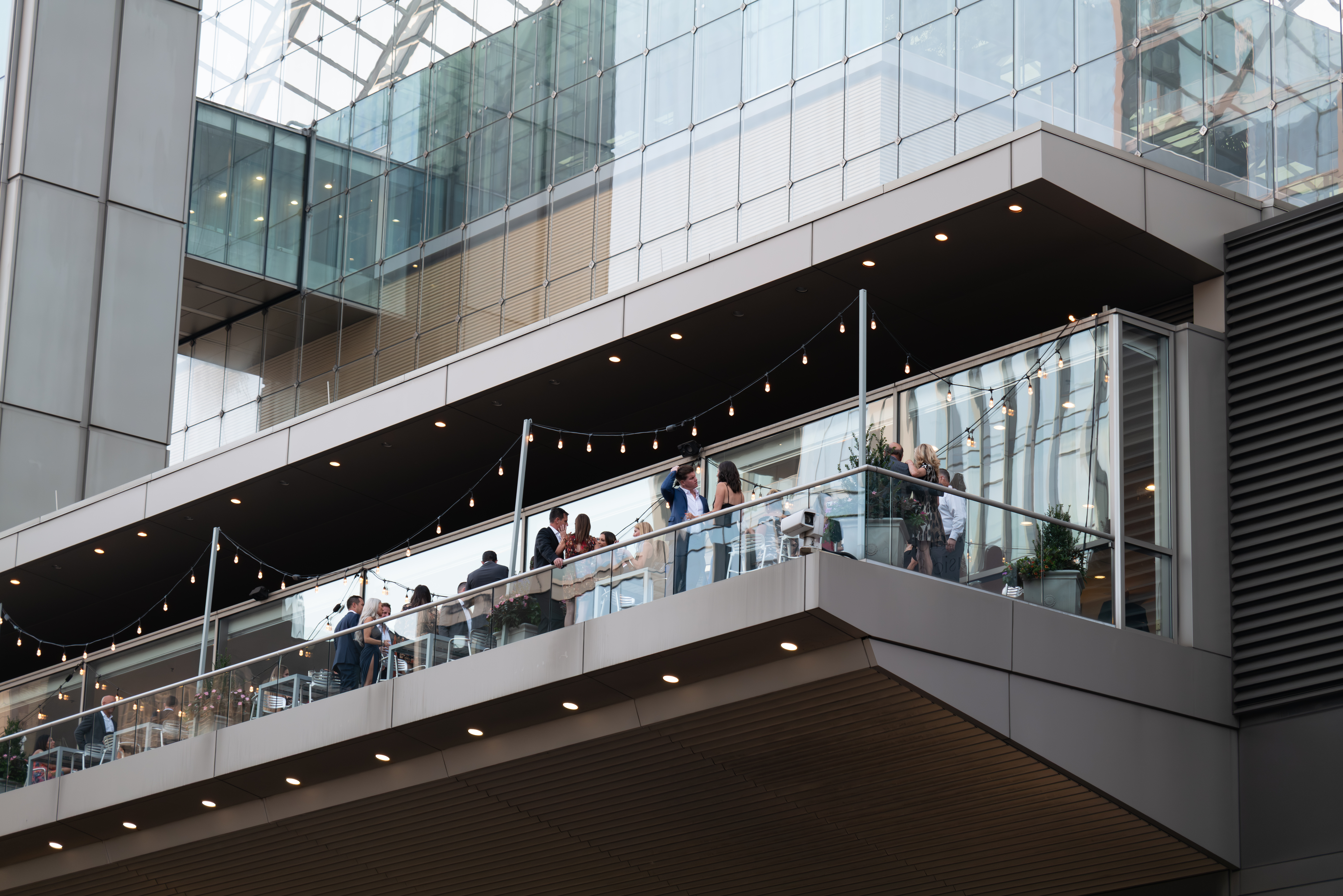 The Tier Two Lounge and balcony provides a modern and stylish atmosphere, perfect for cocktail receptions and dinners, with sweeping views of Broad Street and City Hall. Each space at the Kimmel Center combines architectural beauty and modern sophistication, making it the perfect choice for any occasion.
